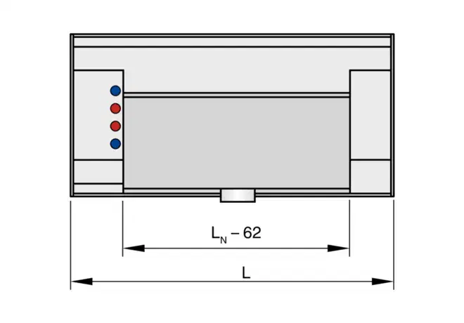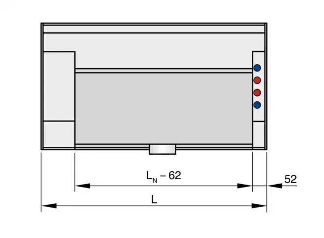 L = Samlet længde (diffusor front)