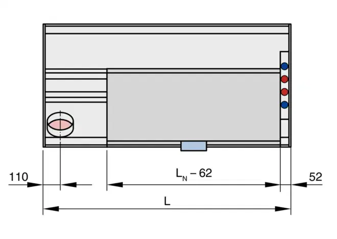 DID632 Active chilled beam GL Longitudinal blades GQ Transverse blades LR Perforated metal, circular holes LQ Perforated metal, square holes 2 2-pipe 4 4-pipe Z Small plus M Medium G Large U Extra large LL (also available as supply and extract air combination) LR ML MR RL RR (also available as supply and extract air combination) Note L = left side, R = right side, M = centre No entry: none AV Front AH Rear Available from L = LN + 250 mm No entry: Ø12 mm pipe with plain tails A1 With G½" external thread and flat seal A2 With G½" union nut and flat seal | L × LN Supply air L is up to 7 mm shorter than LN Supply and extract air combination B No entry: powder-coated RAL 9010, pure white P1 Powder-coated, specify RAL CLASSIC colour Gloss level RAL 9010 50 % RAL 9006 30 % All other RAL colours 70 % No entry: untreated G3 RAL 9005, black No entry: none LE With No entry: none VS With |