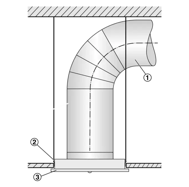 Height of a ceiling diffuser, from the lower edge of the suspended ceiling to the upper edge of the spigot