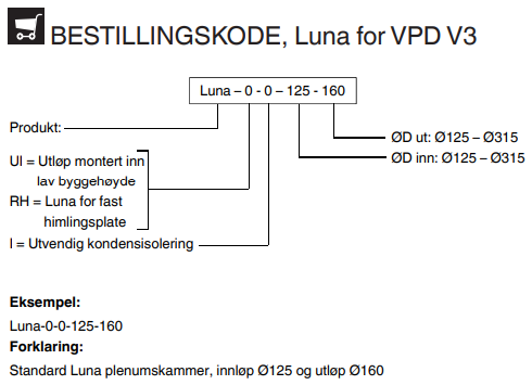 Der anbefales at bruge Luna Plenumskammeret, for at få en bedre lyddæmpning, samt regulerings- og målemuligheder. Luna Plenumskammer er et rektangulært kammer med demonterbart spjæld, som giver adgang til tilslutningskanalen. Spjældet kan låses i den ønskede position.