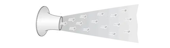 Faste dyser med akustisk optimerede konturer og sænkede huller til fastgørelse på en plan flade.