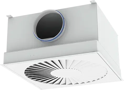 TC-FC: Cirkulær studs med toptilslutning, med støtter til montering i nedsænkede lofter