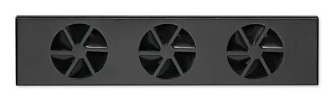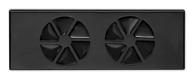 Komponent, der er klar til installation, og som består af en armaturfront med op til seks udløb. Hver udgang har radialt anbragte faste lameller og en kappe med spjældelement.