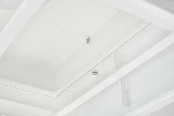 Armaturfront fremstillet af perforeret metalplade med omkredsretur, pulverlakeret RAL 9010 (ren hvid) med 4-punkts fastgørelse. Lækagetest for hvert kabinet.