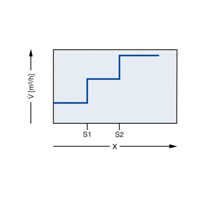 Styring af fraluft/tilluft med 3 setpointværdier (EC/SC-3P) | |