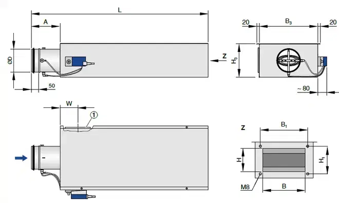 BHB * | Δp | 2 - 10 V | integreret komponent 600 Pa | spring return aktuator separat | ② |